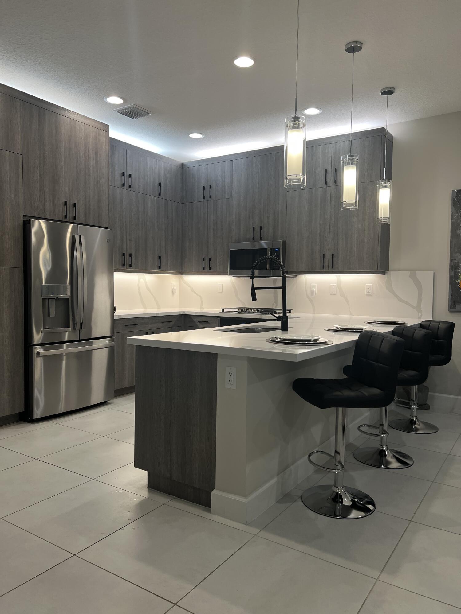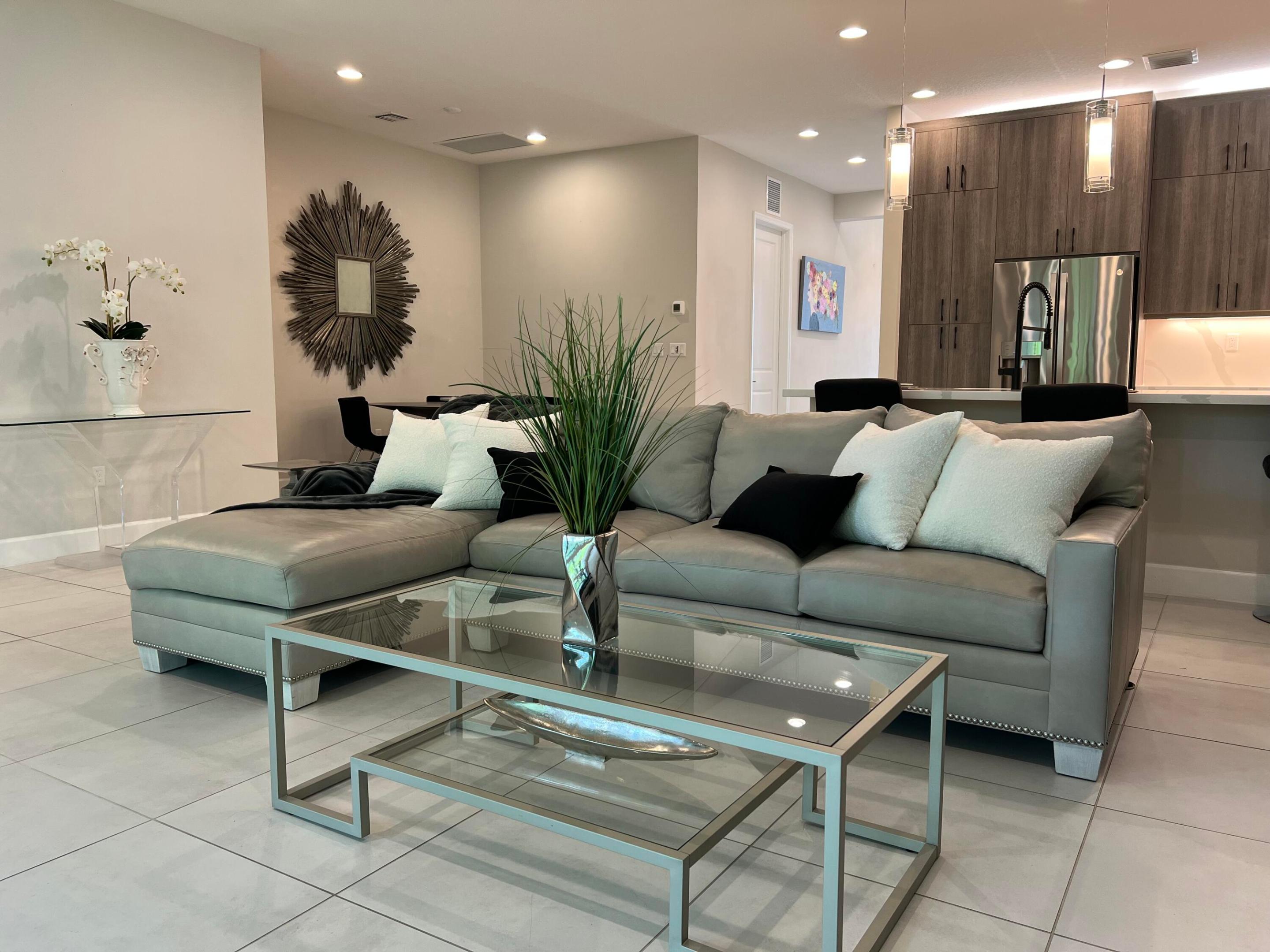 This refined residence showcases over $72,000 in curated upgrades, blending style, comfort, and elevated design. Highlights include impact-resistant entry glass, upgraded lighting, Foxtail palms, and a screened patio. A Generac 22KW generator with remote monitoring and Qolsys security system provide peace of mind. Inside, enhanced lighting features, designer fixtures, recessed LEDs, and fans throughout. The chef's kitchen offers gas cooktop, quartz counters, backsplash, full height cabinets and GE appliances. MBR bathroom features quartz vanity, frameless shower, ceiling-height mirrors, and designer lighting. Additional upgrades include two-tone paint, window treatments, custom storage, and 24x24 tile flooring—creating a cohesive, modern aesthetic well beyond standard construction. This house is being sold unfurnished. However, the owner has prepared a separate bill of sale for the high-end furnishings (Bernhardt, Lexington, BoConcept, Modani and Restoration Hardware), along with original artwork, etc. should the buyer be interested in purchasing.